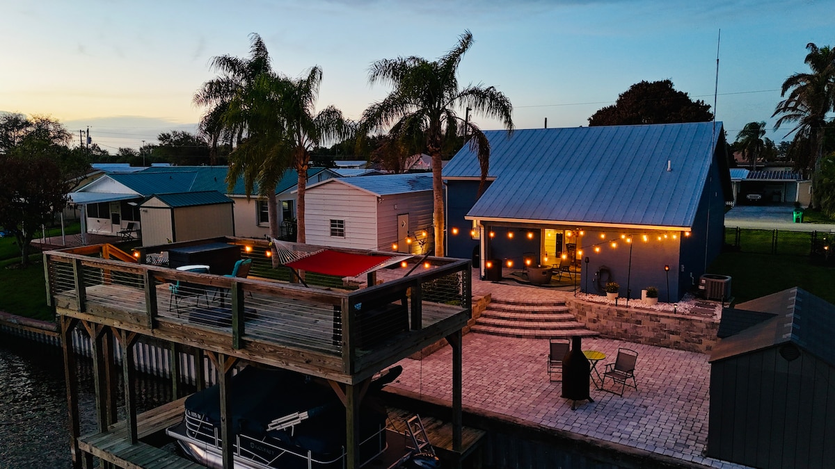 Gesamte Unterkunft mit Tiki-Bar im Hinterhof auf dem Wasser