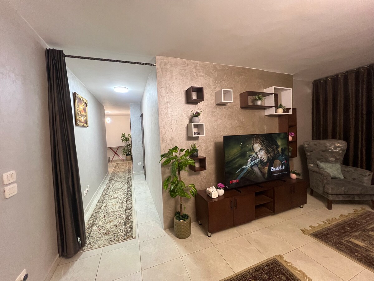 Entdecke Kairo von meiner gemütlichen Wohnung in der Innenstadt aus! Eingebettet in eine ruhige Nachbarschaft bietet der neu eingerichtete Rückzugsort Komfort und Komfort. Nur 5 Minuten vom U-Bahnhof Saad Zaghloul und dem Institut Français d'Égypte au Caire und nur wenige Schritte vom beliebten Halawa Cafe entfernt. Genieße kostenlosen Zugang zu einem FITNESSSTUDIO und einem VIP-Spielzimmer sowie einer kostenlosen Tour in der Gegend. Entspanne dich im einladenden Wohnzimmer, informiere dich über den Fernseher und koche in der ausgestatteten Küche. Mit 2 Betten kannst du dich für einen unvergesslichen Aufenthalt einfach ausruhen!