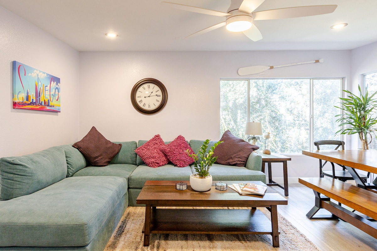 Brauchst du etwas Farbe in deinem Leben? Komm und übernachte in unserem einzigartigen Zuhause – groovige Wandmalerei, helles Dekor, regenbogenfarbene gesprenkelte Böden. Versteckt im ruhigen Viertel University Heights, verfügt dieses Haus über einen üppig angelegten Hof mit: - Pool - Whirlpool - Grill. - Gartenmöbeln Unsere Unterkunft bietet auch den ultimativen Komfort: - Renommierte Restaurants und Cafés sind nur wenige Minuten entfernt - In der Nähe des Flughafens, des Zoos, des Balboa Parks und der Innenstadt - In der Nähe vieler Weltklasse-Strände