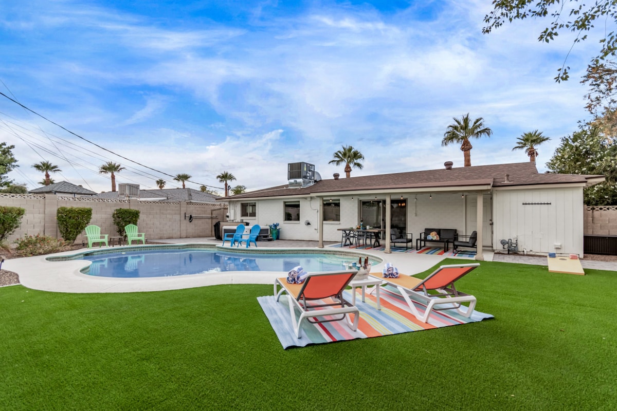 Hab Spaß mit der ganzen Familie in diesem stilvollen Haus, das mit allem ausgestattet ist, was du für deinen Urlaub brauchst! Genieße einen geräumigen Garten – mit Pool, Grill und Cornhole-Set. Spaß für die ganze Familie! Weniger als 5 Minuten vom Stadtzentrum von Scottsdale entfernt. Nur wenige Minuten von der Autobahn entfernt, sodass du in weniger als 30 Minuten fast überall im Phoenix Valley hinfahren kannst!! Weniger Reisezeit = weniger Stress. Komm und genieße dieses seltene Zuhause-weg-von-Zuhause, bevor alles ausgebucht ist! TPT: 21412844 Scottsdale STR-Lizenz: 2024513