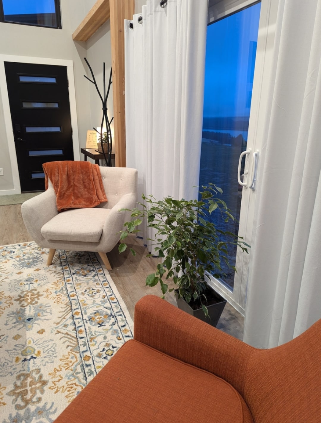 The Stargazer is nestled in the snowy Kootenay mountains—just 5 minutes to Red Mountain Resort and right next to Blackjack’s extensive cross-country ski trails. Only 6 minutes to downtown Rossland. This artistic winter retreat offers peaceful privacy on 5 acres with mountain views. After a day on the slopes or trails, unwind in the red cedar barrel sauna and cozy up by the fire in a stylish living space that blends modern design with rustic log cabin charm.