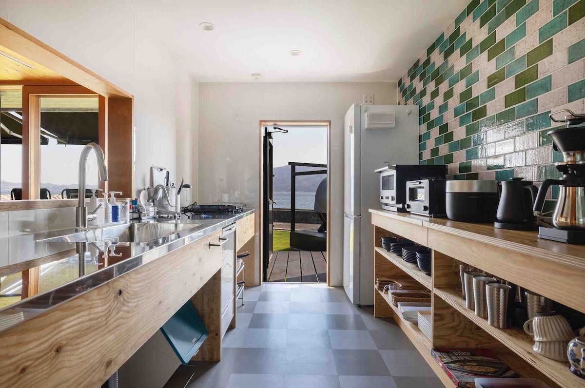 Es handelt sich um eine Unterkunft, die nur eine Gruppe pro Tag aufnehmen kann, um die Schönheit der vielen Inseln und den Sonnenuntergang in der Seto-Inseln zu genießen. Die Unterkunft wurde von dem Architekten (dem Gastgeber selbst) entworfen, der mehrere Auszeichnungen im Ausland erhalten hat. Das Motto lautet "Ein Leben in Achtsamkeit", das nicht außergewöhnlich sein soll, sondern den Alltag bereichern soll. Hier können Sie ein solches Leben erleben. Es gibt einen separaten Innenraum für das Hinoki-Bad, aber die Aussicht auf die Seto-Inseln und den Sternenhimmel vom mit Holz befeuerten Goemon-Bad ist einfach unschlagbar. Wenn Sie Glück haben, können Sie sogar künstliche Satelliten und Meteore sehen. Das mit Holz befeuerte Wasser kühlt nicht ab. Sie wärmt das ganze Körperinnere. Die Bettwäsche wurde von einem alteingesessenen Bettwarenhersteller in Kyoto speziell angefertigt und lädt den Körper, der sich im Bad entspannt hat, zum Schlafen ein. Die meisten Gäste hinterlassen Kommentare, dass sie gut geschlafen haben. Tagsüber können Sie sich in der mit Zimmerpflanzen gefüllten Lounge aufhalten. Genießen Sie das Sonnenlicht, das durch die Baumwipfel hereinfällt. Hier ist es am besten, wenn Sie nichts denken und einfach nur entspannen. Wie wäre es, wenn Sie Ihren Kopf frei machen? Wenn Sie uns eine Woche vor Ihrem Aufenthalt kontaktieren, können wir Ihnen lokale Spezialitäten der Oshima Inseln und saisonale Gerichte zubereiten. Wenn Sie möchten, können Sie auch an einem Tisch aus unbehandeltem Zedernholz essen.