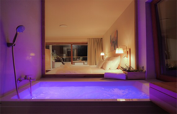 Villa Lojena offers a brand-new, luxurious studios for two, featuring a modern kitchen, spacious bathroom, the latest Daikin air conditioning, and a private Jacuzzi on a large private terrace. Guests have access to a large 85m² pool, with loungers under palm trees, hydromassage jets, and geysers – perfect for total relaxation. New electric scooters are also available exclusively for Villa guests, for just €30/day. Perfect for couples looking for privacy, luxury, and a romantic escape.