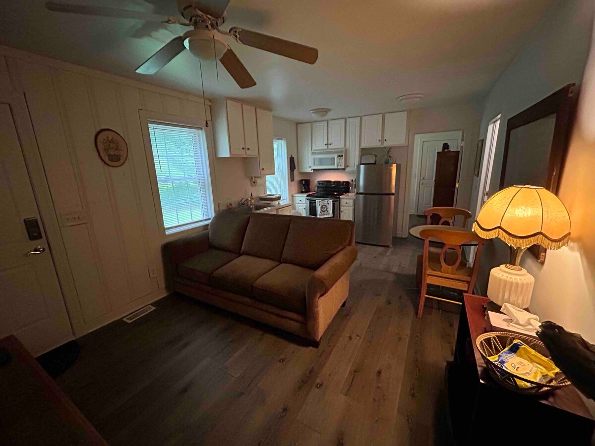 Am Ende einer Straße am Ende einer Straße ist diese MIL-Suite mit meinem Haus verbunden und befindet sich auf einem Park wie 3 Acres. Sie verfügt über einen Vorder- und Hintereingang, einen eingezäunten Garten, einen Picknicktisch, eine voll ausgestattete Küche und einen Wohnbereich. Ein Schlafzimmer verfügt über ein Queensize-Bett. Das andere Schlafzimmer verfügt über ein Einzelbett. Ein komplettes Badezimmer mit schöner neuer 6-Fuß-Badewanne/Dusche. Dieser Ort ist einfach, sauber und bereit. Die Unterkunft verfügt über eine eigene Zentralheizung und Klimaanlage sowie einen Warmwasserbereiter. Ich mache mir keine Sorgen, weil ich weiß, dass diese Buchung günstiger ist als ein lokales Motel.