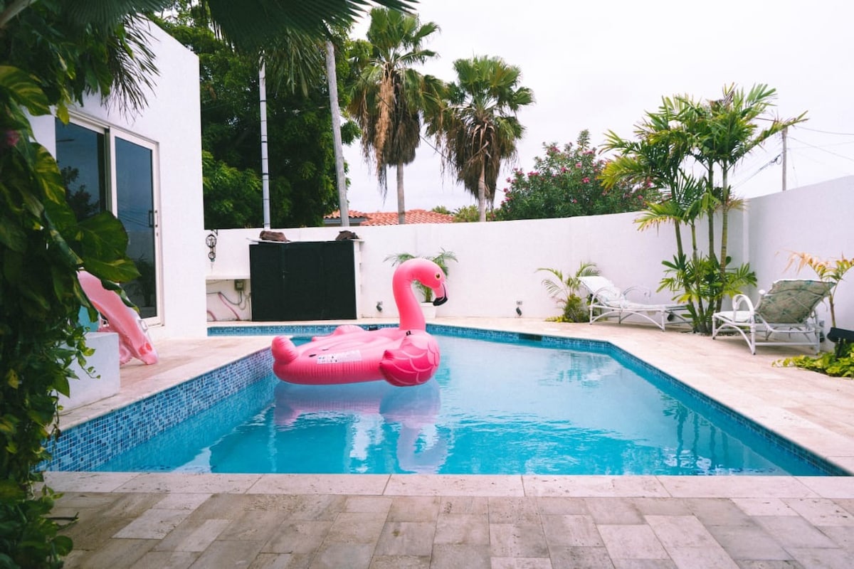 Willkommen in der Villa Rinascente! Diese wunderschöne, neu gebaute, komplett eingezäunte private Villa ist dein zweites Zuhause auf der sonnigen Insel Aruba. Diese moderne Villa mit 3 Schlafzimmern im Inselstil ist alles, was du für einen Mini-Aufenthalt benötigst. Genieße die vollständig abgeschlossene Unterkunft mit vielen Liegestühlen rund um den schönen Pool oder entspanne dich im Schatten unter der Palapa. Direkt an der Palm Beach Road gelegen und weniger als 5 Fahrminuten vom Hochhaus-Hotelbereich und dem schönen Palm Beach und dem weltweit erstklassigen Eagle Beach entfernt.