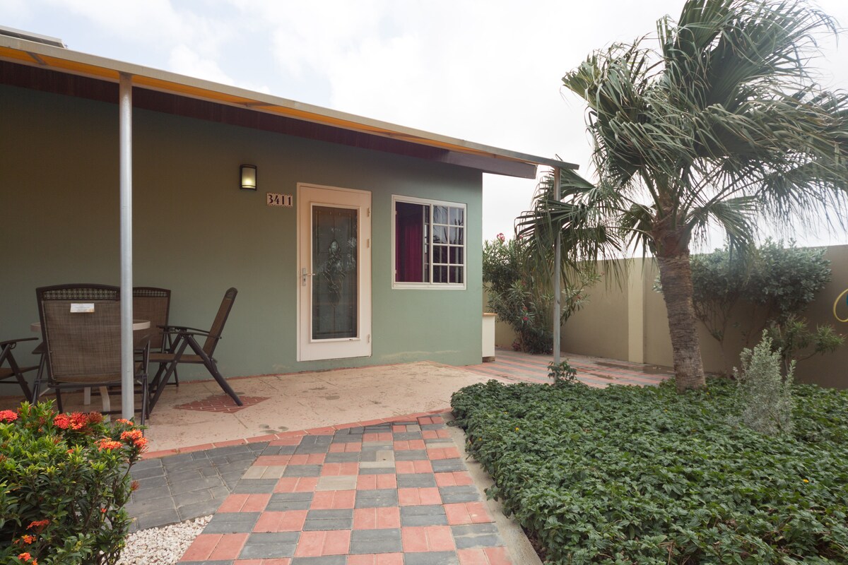 Nettes Stadthaus perfekt für eine entspannte Zeit, mit Blick auf Hooiberg. Genieße einen schönen tropischen Garten mit Hinterhof und Pool, ideal für ein schönes Frühstück oder Kaffee. Lausche dem Vogelgezwitscher und spüre die tropische Brise im Vorgarten, Hinterhof oder am Pool. Günstig gelegen, nur 5 Autominuten vom Flughafen entfernt, mit der Bushaltestelle nur 10 bis 15 Gehminuten entfernt. Surfside Beach und lokale Bars sind innerhalb von 20 bis 30 Minuten zu Fuß erreichbar und Oranjestad ist eine 15-minütige Fahrt entfernt.