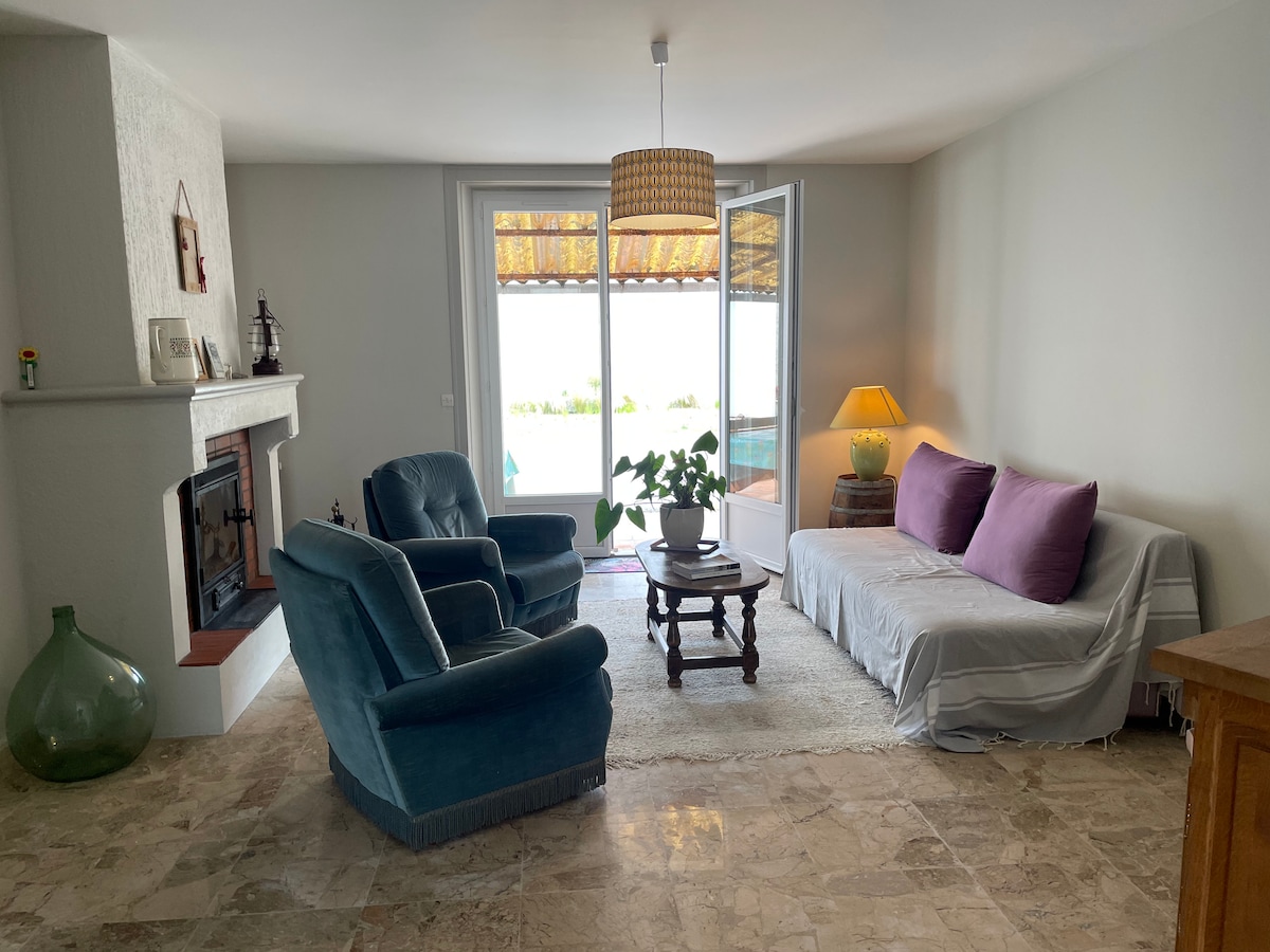 Familiäre Unterkunft im mediterranen Stil, eingebettet im Herzen der Weinberge zwischen der Mündung der Gironde und dem Meer (20 Minuten). Dieser ungewöhnliche Ort, der von Licht umgeben ist, ist ein idealer Ausgangspunkt, um das Médoc zu erkunden. So können Sie die Weinberge, die umliegenden wilden Strände und die Wellen für Surfer, die Ruhe suchen, genießen. Das Haus eignet sich mit seinem Pool und seiner „Slow Life“-Atmosphäre zum Entspannen.