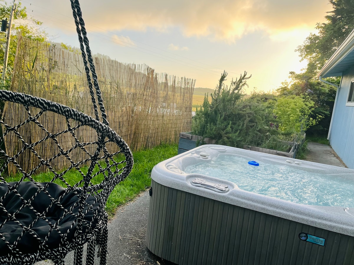 Willkommen in deinem bescheidenen Zuhause an der Humboldtküste. Wache auf und genieße Kaffee auf der Hollywoodschaukel mit freiem Blick auf den Redwood National Park und den Redwood Creek. Dann zu Fuß, fahre oder fahre an der Elchherde vorbei zu alten Mammutbäumen oder folge dem Bach zum mächtigen Pazifik mit kilometerlangem Flachstrand. Verbringe mehr Zeit mit dem besten Zugang zu riesigen Mammutbäumen, atemberaubenden Stränden und phänomenalem Angeln. Kehre nach Hause zurück zu Cornhole, Tischfußball, S'mores, einem knisternden Feuer und einem Film und einem Whirlpool unter den Sternen!