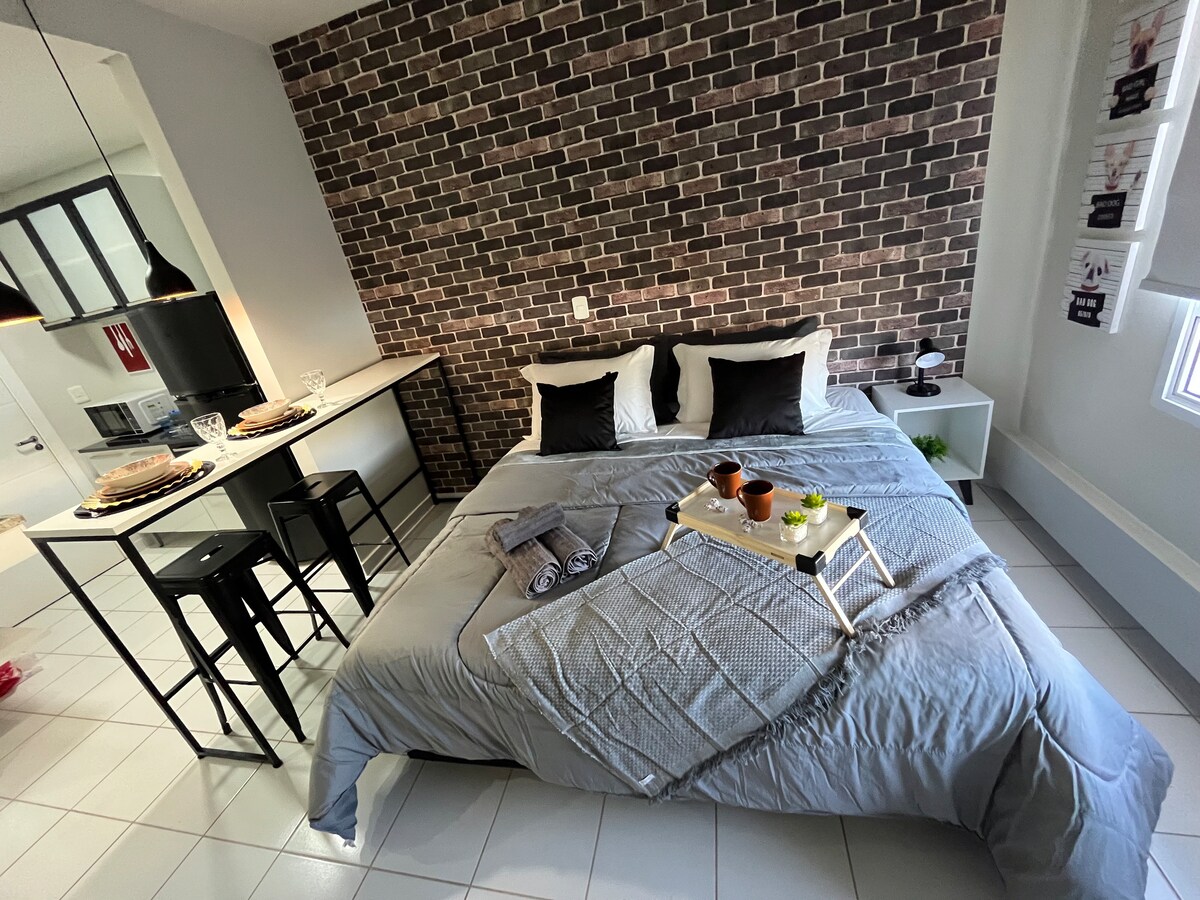 Modernes und gemütliches Studio, vor der Unaerp, in der Nähe des Forums, der Arena Nicnet, von Supermärkten, Apotheken und einer Bäckerei. Mit Liebe zum Detail eingerichtet, um eine komfortable und einladende Umgebung zu schaffen, damit Sie sich wie zu Hause fühlen. Die Wohnanlage bietet 24-Stunden-Sicherheit, Parkplatz für ein Auto, Waschsalon und einen kompletten Freizeitbereich mit Schwimmbad, Fitnessraum, Arbeitsbereich, Minimarkt und Haustierbereich, ideal zum Entspannen und Genießen von Momenten der Ruhe.