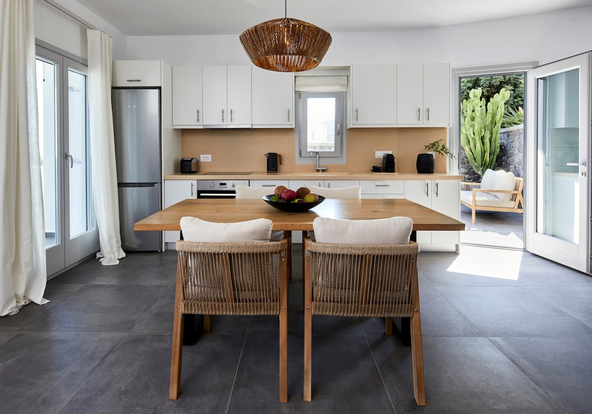 Die Pura Vida Villa ist eine einzigartige Unterkunft. Das Design- und Baufachwissen, das in diese Immobilie investiert wurde, macht sie zu einem der einzigartigen Angebote auf der Santorini Caldera. Reservierte Parkplätze für Gäste sind inbegriffen.