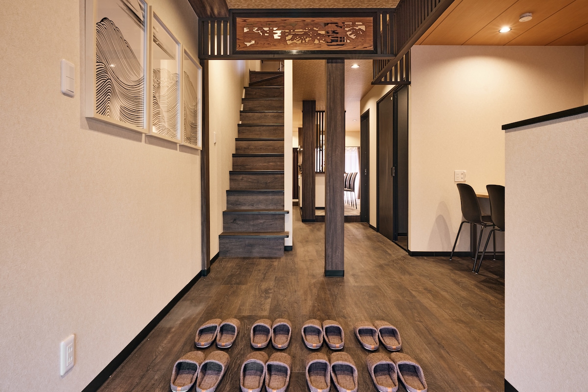 Wir haben ein traditionelles japanisches Haus renoviert, das sein natürliches Holzambiente bewahrt. Der natürliche Stil, zusammen mit sanften Wandfarben und -möbeln, bietet nach deinen Reisen eine beruhigende Atmosphäre. ☆ Nur 5 Minuten bis USJ! Nur 5 Gehminuten vom Bahnhof Nishikujo entfernt. Ausgezeichneter Zugang zu verschiedenen Teilen von Osaka, einschließlich Umeda und Namba. ・ Günstig erreichbar über die JR Osaka Loop Line, JR Sakurajima Line und Hanshin Namba Line. ・ Direkte Routen zum Bahnhof Kyobashi, zum Bahnhof Namba und zum Bahnhof Tennoji.