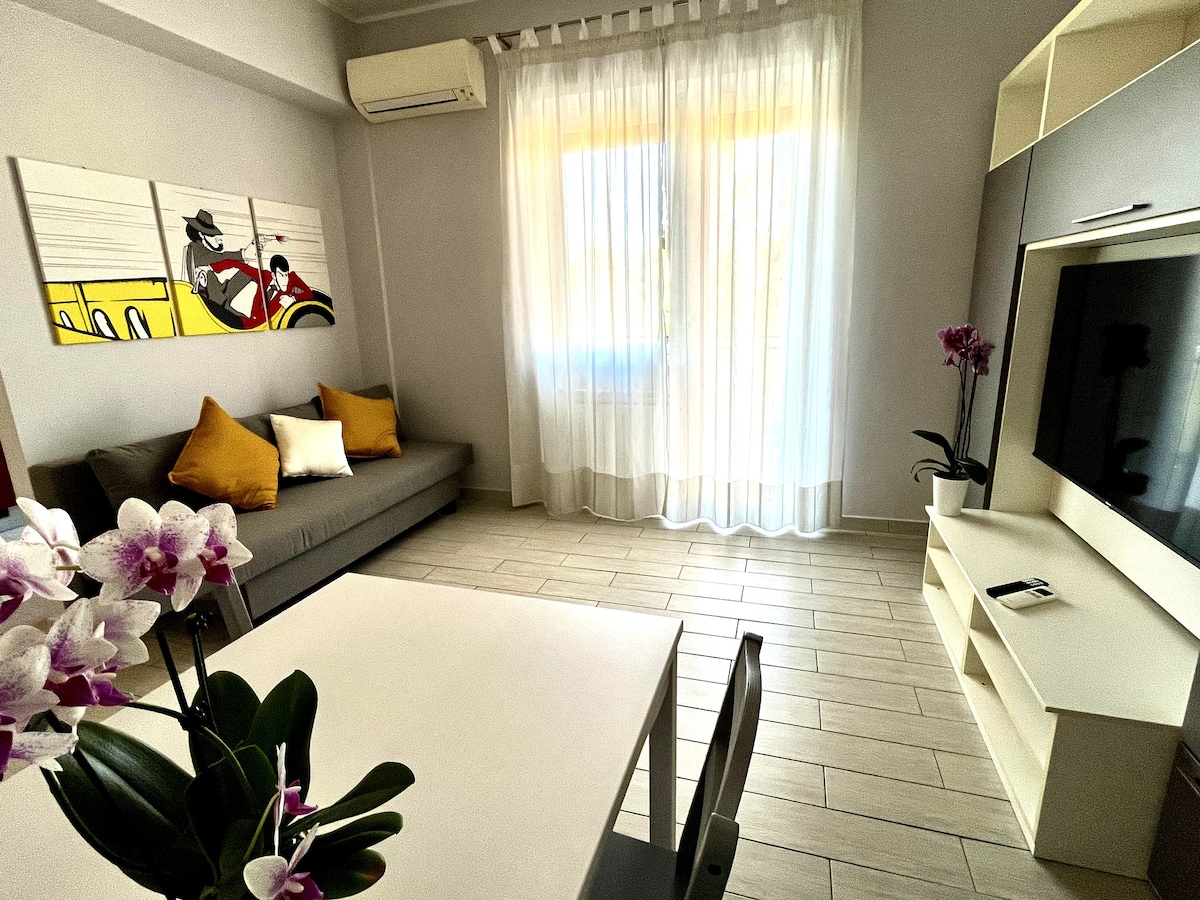 Confortevole appartamento situato al piano terra di 65 mq curato nei minimi dettagli per garantire un soggiorno piacevole. - luminoso soggiorno con divano letto - cucina con piano a induzione fornita di tutti gli accessori - antibagno con doccia e bagno completo - camera con letto matrimoniale - angolo smart working e connessione wifi - due piccoli giardini