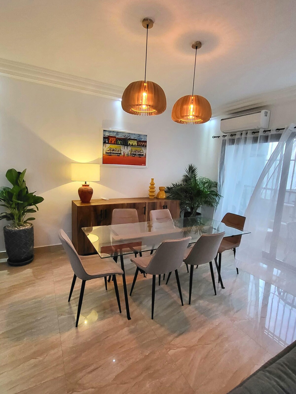 Möblierte Wohnung in Yoff, Dakar, geräumig in einer ruhigen und sicheren Gegend. Sie ist komplett ausgestattet mit Klimaanlage, Warmwasserbereiter, Videotelefon, Waschmaschine, Mikrowelle Ihre Lage ist ideal für Ihre Reisen in Dakar und im Rest des Landes. Der Strand ist 150 m entfernt mit einem Surfclub in der Nähe. Es verfügt über 2 Schlafzimmer, 1 mit einem Doppelbett und das andere mit 2 Einzelbetten. wLAN Fiber und Netflix sind vorhanden Sie haben Zugang zu einer Terrasse mit Panoramablick auf das Meer.