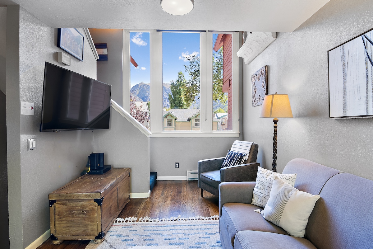Enjoy stunning views of Ajax and down valley from this amazing condo, perfectly situated for both tranquility and convenience. True ski-in/ski-out access and just steps the chairlift and the free town shuttle, you’ll have effortless access to both the slopes and the heart of town. If you are looking for your cozy winter retreat you have found it. Guests can take in the mountain views sitting next to the gas fireplace or watch the alpenglow from the balcony in our stylish 3 bedroom condo.