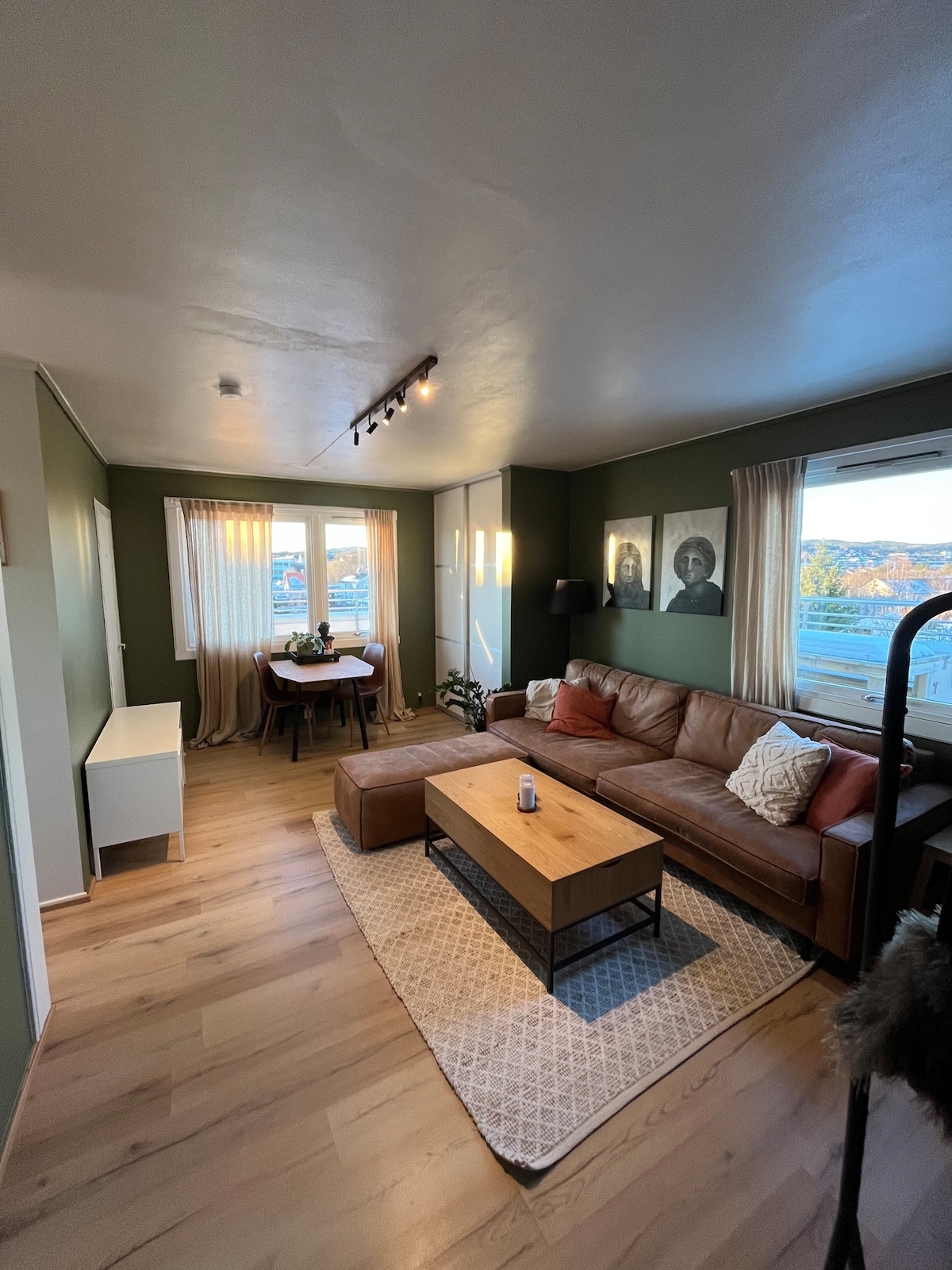 Die Wohnung befindet sich im 3. Stock. Perfekt gelegen, ca. 5 Gehminuten von Trondheim Torg, Øya/Nidelven und dem Meer entfernt. Im Inneren ist es einzigartig gestaltet mit geschwungener Wand und ovalem Fenster im Wohnzimmer. 66 qm, geräumig mit hohen Decken und 17 qm Schlafzimmern. Badezimmer in guter Größe. Ausgestattet mit einer Mischung aus klassischen Retro-Möbeln und modernen Möbeln. Das Wohnzimmer hat einen schönen Blick auf Steinåsen. Ausgezeichnete Anbindung an die öffentlichen Verkehrsmittel, mit einer kurzen Busfahrt zum Beispiel nach Bymarka oder Solsiden.