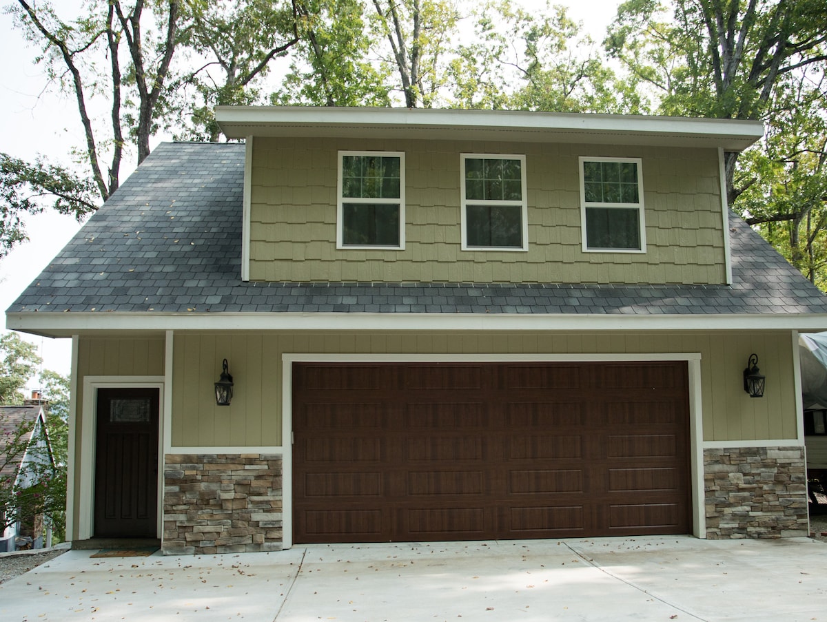 Entspanne dich bei diesem einzigartigen und ruhigen Kurzurlaub. Zentral gelegen zwischen Springfield und Branson in der malerischen Stadt Ozark. Wir befinden uns nur zwei Minuten vom Stadtplatz entfernt, aber du wirst unsere ländliche Umgebung genießen. Wir sind von Wäldern und Weiden umgeben, sodass du dich entspannen, die Natur genießen, die Tierwelt genießen und dich auf unserer überdachten Terrasse ausruhen kannst. Wir haben eine Waschmaschine/einen Trockner. Kingsize-Bett, Doppelbett und Sofa. Voll ausgestattete Küche. Viele Sitzgelegenheiten im Freien. Feuerstelle zum Genießen mit Holz vorhanden.
