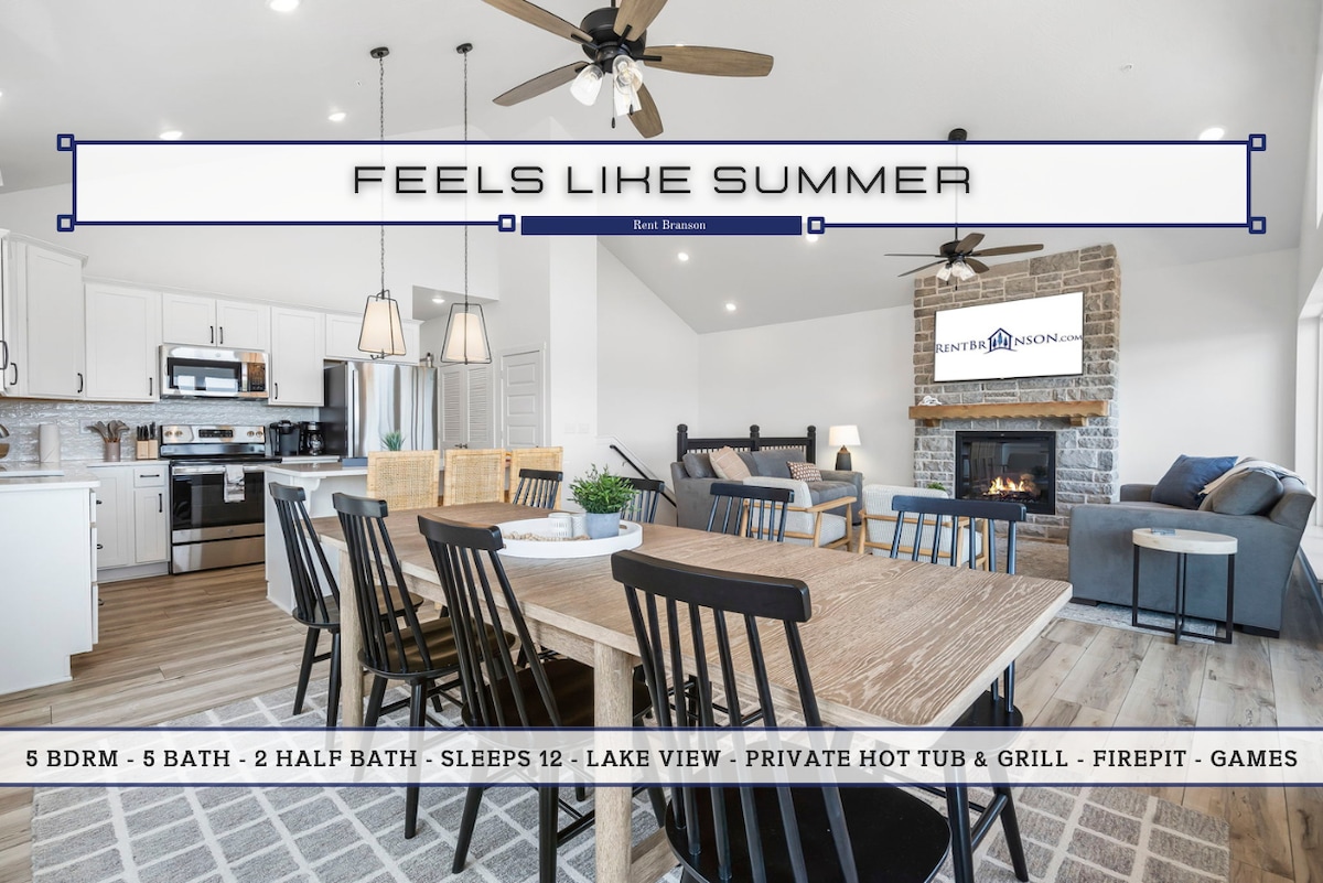 Feels Like Summer ist ein neues Ferienhaus in Wilderness Mountain mit einer warmen und einladenden Atmosphäre, perfekt für Familien und eine Gruppe von Freunden. Es verfügt über eine große Terrasse mit Blick auf den Table Rock Lake, auf der du dich entspannen und die natürliche Schönheit genießen kannst. Der geräumige Wohnbereich verfügt über einen Kamin und viel natürliches Licht. Die voll ausgestattete Küche ist perfekt für alle, die gerne kochen.