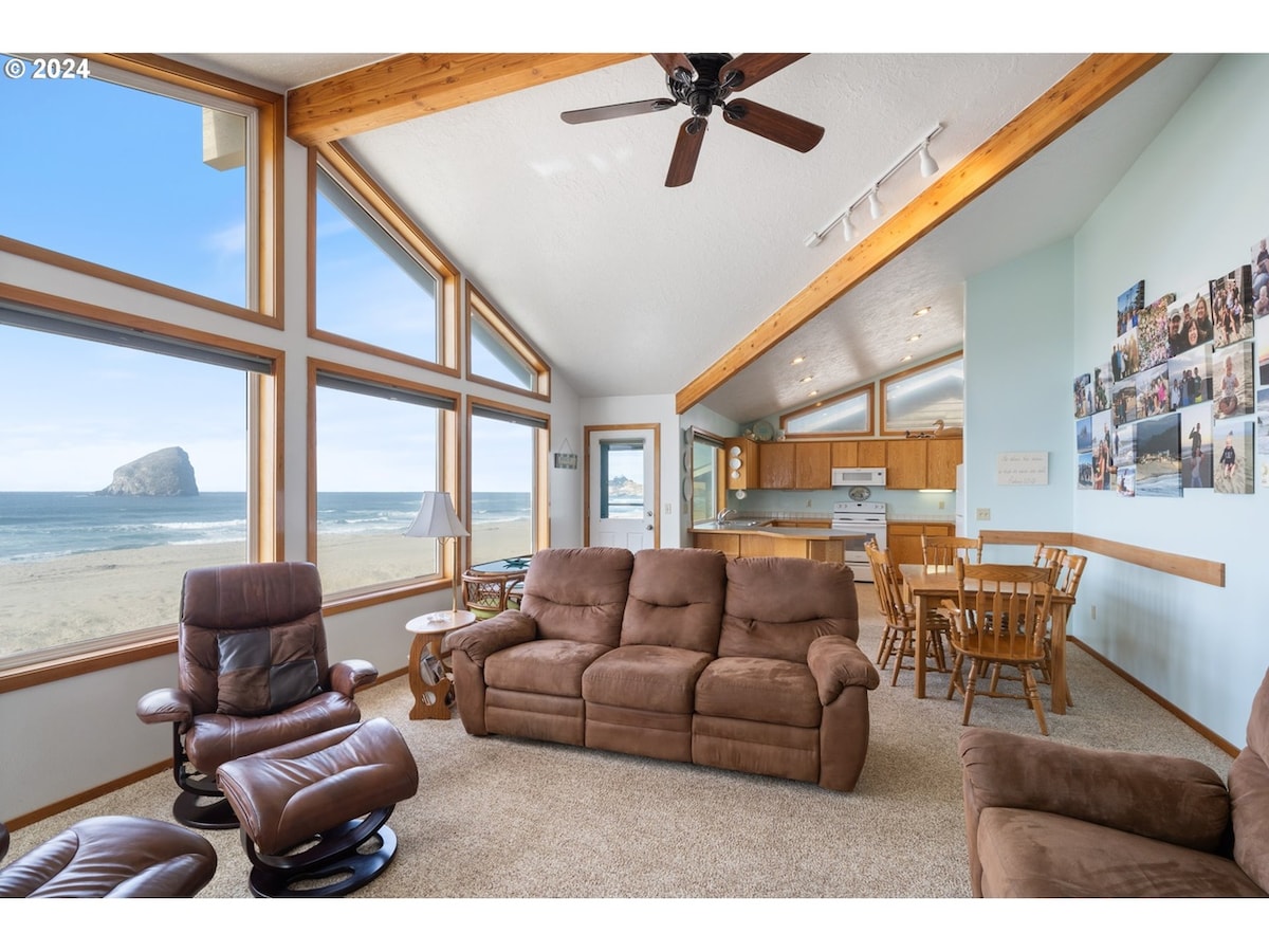 Übernachte nur wenige Schritte vom Pazifik entfernt in einer der besten Strandstädte Oregons. Dieser verschlafene kleine Strandort ist ideal für Familientreffen oder romantische Wochenenden – nur ein paar Stunden außerhalb von Portland. Komm und genieße die Schönheit! Unser Haus liegt direkt am Strand. Gehe von der Terrasse auf deine eigene Strandfront. Nur einen kurzen Spaziergang den Strand hinauf zur berühmten Pelican Brewery und mehr. Genieße Aktivitäten in der Nähe: Wandern, Surfen, Kajakfahren, Schwimmen, Walbeobachtung, Golfen, Drachenfliegen und mehr