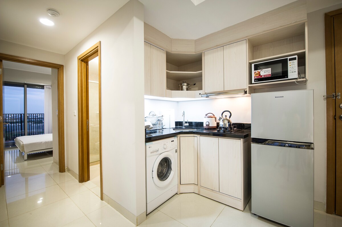 In der Nähe von JIEXPO und JIS bietet unser Studio in Maplepark Apartment modernen Komfort, Highspeed-Internetzugang und Netflix. Das offene Design verfügt über elegante Möbel, reichlich natürliches Licht und nahtlose Arbeits- und Schlafbereiche. Die gut ausgestattete Küchenzeile und der gemütliche Schlafbereich sorgen für Komfort und Funktionalität. Mit einfachem Zugang zu deinen Veranstaltungen und einem eigenen Balkon mit Poolblick verbindet dieses Studio urbane Raffinesse mit gemütlichem Charme und ist damit das perfekte Zuhause im Herzen von Jakarta.