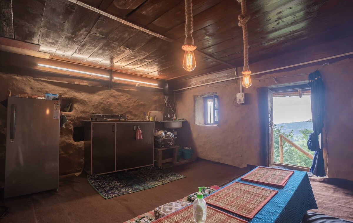 Entdecke dein Versteck in den Hügeln – ein ungewöhnlicher Rückzugsort mit einer rustikalen Hütte und ruhiger Aussicht. Perfekt für alle, die reisen, um abzuschalten. Über die Unterkunft :- Entspanne dich mit deiner Familie/deinen Freunden in dieser ruhigen Unterkunft. Die Hütte ist aus Himalaya-Stein, Himalaya-Schlamm und Himalaya-Holz gefertigt. Mitten im Apple Garden gelegen. Aktivitäten in der Nähe: - Waldspaziergang & Tracking. Erkunde versteckte Schätze wie Sarpas Trek, Grahan Village Trek.