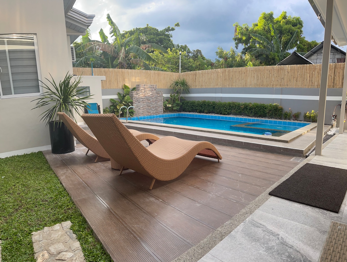 Entspanne dich in dieser neu erbauten Hütte mit Tauchbecken und geräumigem Garten. Voll klimatisierte gemütliche Hütte mit geräumigem Wohnraum im Loft-Stil und modernem Bad mit Badewanne und heißer Dusche. Verfügt über einen geräumigen Garten und einen Garten, der sich perfekt zum Kochen/Grillen und Entspannen am Pool eignet. Ausgestattet mit schnellem Internet mit einer Geschwindigkeit von 100 Mbit/s. Du hast die ganze Unterkunft für dich allein. Perfekt für einen entspannenden Kurzurlaub oder mobiles Arbeiten. Sampaloc Lake - 20 Minuten entfernt SM San Pablo - 15 Minuten entfernt