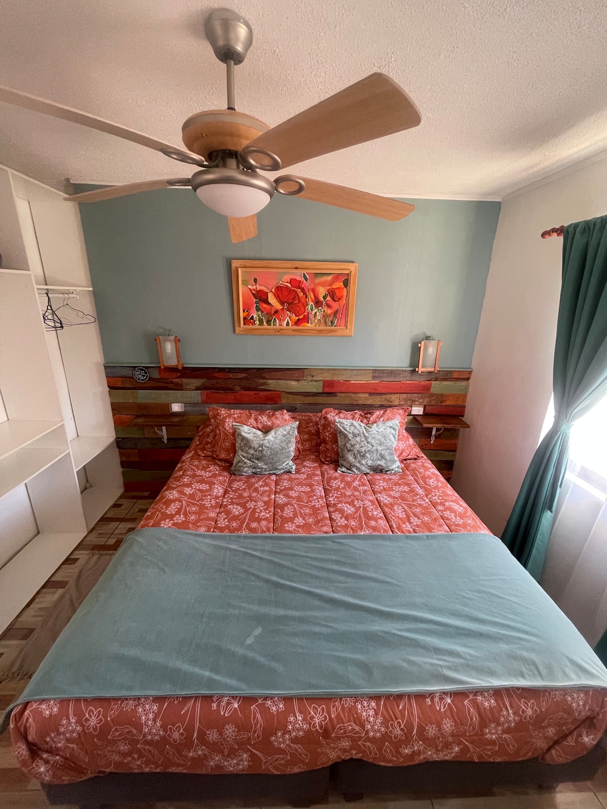 Voll möbliertes Haus, 2 Blocks von der Plaza de Pisco Elqui entfernt, ganz in der Nähe von Restaurants und Geschäften. Privater Parkplatz. 2 Schlafzimmer, 1 großes Badezimmer. 1 Doppelbett und 1 Kingsize-Bett mit Bettlaken, Decken, Bettdecke, Kissen und Polstern. 1 Sofa, 2 Stühle und ein alter Tisch. 1 Tisch für 6 Personen. Voll ausgestattete Küche, Geschirrspüler, 1 2-türiger Kühlschrank, Töpfe, Geschirr, Besteck, Wasserkocher usw. Holzkohlegrill. Terrasse mit 2 Sofas. Umgeben von Vegetation und mit Blick auf die Hügel.