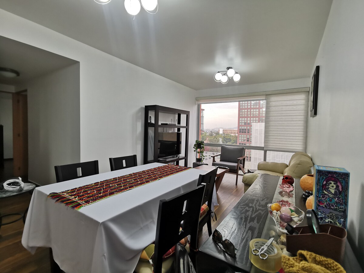 Genieße diese wunderbare 1-Zimmer-Wohnung: * Atemberaubender Panoramablick auf die Skyline * Einzigartig * Beste Lage in Mexiko in der Stadt * Super sicher + viele Restaurants + Cafés + Geschäfte & mehr * Top-Annehmlichkeiten * Concierge rund um die Uhr in der Lobby * Super schnelles und sehr zuverlässiges WLAN * Komfortabler, eigener Arbeitsplatz * Voll ausgestattete Küche * Queensize-Bett mit europäischer Memory-Schaumstoffmatratze. * Gut durchdachte und super komfortable Unterkunft * Voller Pflanzen * Blitzsauber und desinfiziert * Geräumig * Voller Magie