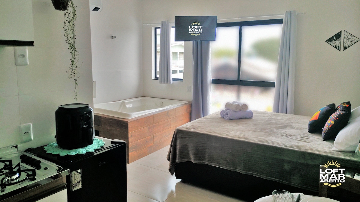 Diese neue und komfortable Unterkunft in bester Lage in der Stadt ist perfekt für Aufenthalte als Paar, Familie oder Freunde. • Gesamte private Unterkunft; • 13 km von Florianopolis entfernt; Das Haus hat: Cestas Courtesy *(4+); 2 Klimaanlage; 1 Schlafzimmer und 1 Schlafsofa; Smart-Fernseher; WLAN; Komplette Küche; Waschmaschine; 1 Parkplatz; Aussenbereich; Im Innenbereich ist das RAUCHEN nicht erlaubt. OBLIGATORISCHE Information — in der App, wenn du ein Haustier mitnimmst. • Maximal 2. • Es wird auf den externen Kameras überprüft.