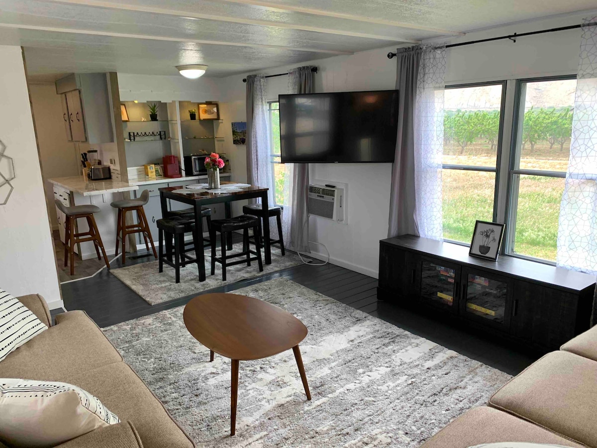 "Our Place" is a cozy trailer house that sits on a working peach orchard. It was remodeled in 2021. We are located near the base of Mount Garfield and are 5 minutes from I-70 access and downtown Palisade. You are a short drive or bike ride from several local wineries, restaurants, the Palisade Brewery, and more. Shuttles to The Palisade Plunge are minutes away. We have a large, covered patio where you can relax, bbq on the gas grill, or enjoy coffee in the morning. Excellent wifi inside and out.