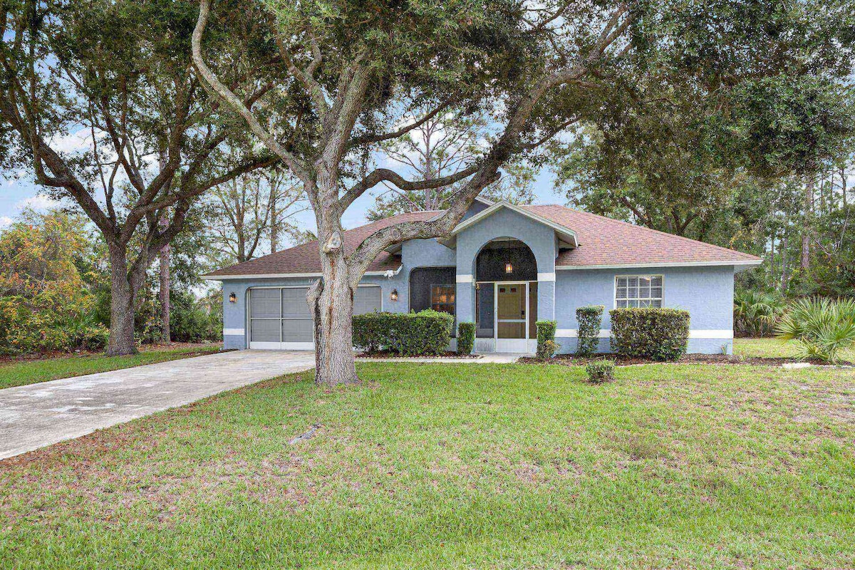 Genieße einen stilvollen Urlaub in dieser frisch renovierten und modernen zentral gelegenen Unterkunft in Palm Coast! 🌴 Das Haus verfügt über einen ruhigen elektrischen Kamin, eine voll ausgestattete Küche, Ambientebeleuchtung, einen Feuerstellenbereich im Freien und vieles mehr! Es gibt 2 Schlafzimmer, 2 Badezimmer und ein ausziehbares Queensize-Schlafsofa.✨ Nur eine Autofahrt von Zielen wie dem historischen St. Augustine, dem berühmten Daytona Beach und Orlando entfernt! Es gibt mehrere Strände – Flagler, Hammock, Crescent, Daytona … usw. – die alle nur eine kurze Autofahrt entfernt sind 🏖️
