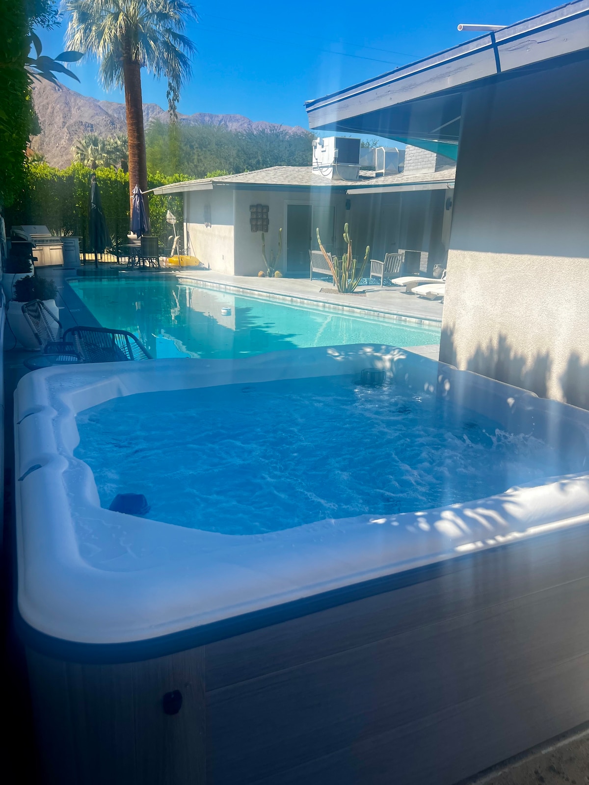 Das „Guest House“ Palm Springs ist ein modernes/privates Gästehaus im Herzen von Palm Springs! Bequem zu allem! Dieses private Gästehaus verfügt über Vier-Sterne-Annehmlichkeiten... Luxuriöses Kingsize-Bett, erstklassige Elektronik, Internet, Beleuchtung, Sound und Möbel mit Panoramablick auf die Berge! Ein kommerzieller Salzwasserpool/Spa zum Entspannen! PS City ID #3527. Transient Occupancy Tax (TOT) von 12,5 %, die von Airbnb erhoben wird. Gegen einen Aufpreis von 300 US-Dollar pro Tag steht eine Poolheizung zur Verfügung.