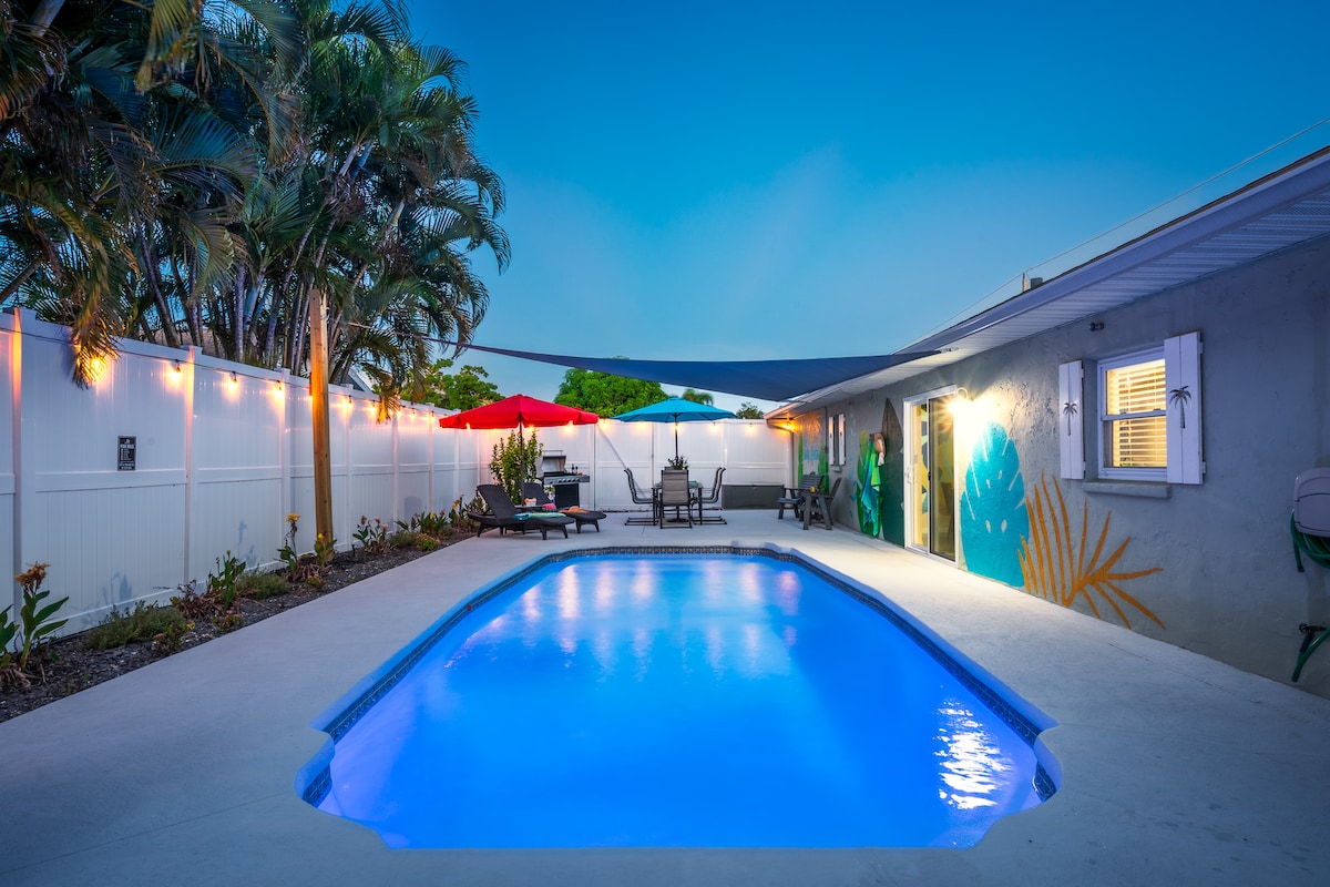 Entspanne dich mit der Familie in dieser tropischen Oase. Die Sunrise Villa befindet sich in der Ecke einer ruhigen Sackgasse, nur eine Viertelmeile von der Bucht von Palma Sola und 5 Meilen von der malerischen Insel Anna Maria und ihren weißen Sandstränden entfernt. Genieße das tropische Hinterhofparadies und die Fülle an Restaurants, Stränden und Unterhaltung in unmittelbarer Nähe. Entspanne dich am Pool, mache eine Radtour entlang der Bucht, eine kurze Rad-/Autofahrt zur Insel oder eine kurze Autofahrt in die Innenstadt von Bradenton.