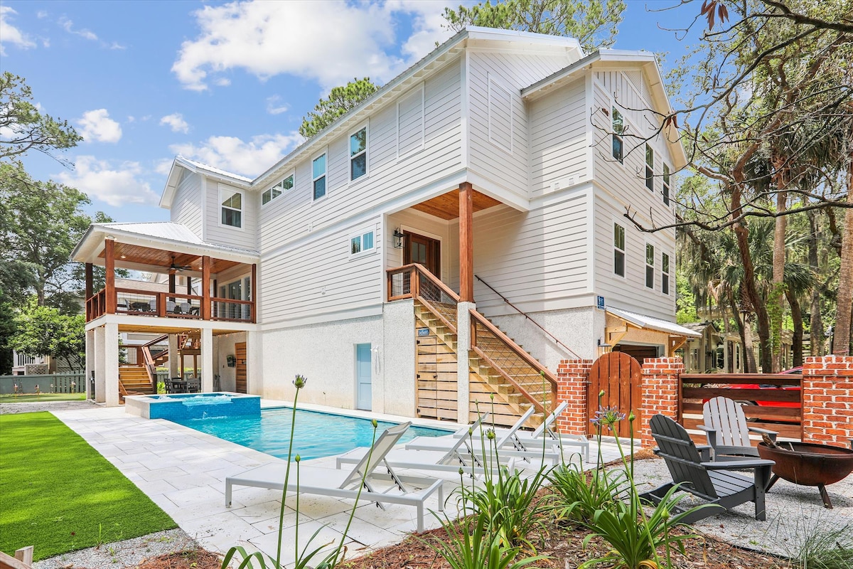 Make our brand new custom built home, Sur La Mer at Burkes Beach, your vacation destination! This stunning 3,200 square foot home was completed in 2023. Our 5 bedroom home is a guaranteed picture perfect destination for your family or group of up to 14 people. Our home features a heated private pool and a short walk to the beach. We are centrally located across the street from beach access, a short drive to local restaurants, bars, grocery store and Hilton Head Airport (HHH).