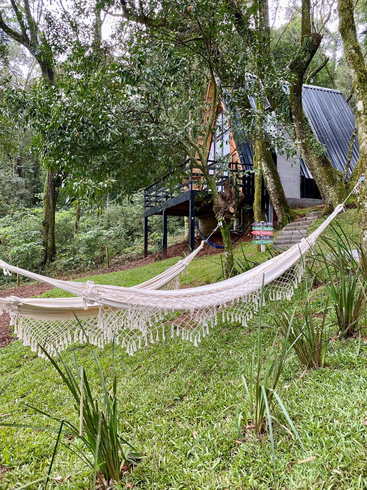 Unsere Hütte hat einen Tinyhouse-Stil an einem ruhigen und einzigartigen Ort. Betrachten Sie den Horizont, während Sie sich am Ende des Tages von der Sonne verabschieden, an der Grenze zwischen Santa Catarina und Rio Grande do Sul, und genießen Sie die ländliche Ruhe des Ortes, die eine besondere Stille ausstrahlt. Mit rustikalem Material und modernem Fußabdruck gebaut, bietet es eine differenzierte Bühne, ideal für einen ruhigen und privaten Aufenthalt. Sie können den Kontakt mit Tieren oder einen Spaziergang genießen, um unsere Quelle kennenzulernen, die wir bewahren.