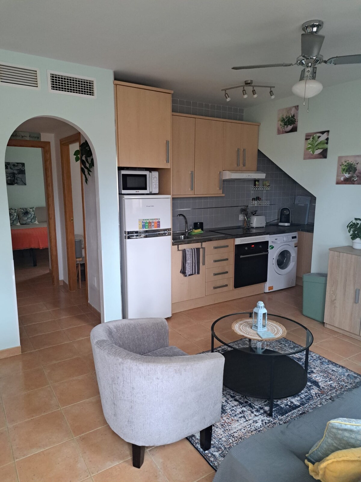 Precioso y recién renovado apartamento, muy cerca del mar, en una pequeña urbanización muy tranquila. A menos de 10 minutos andando o 2 minutos en coche, de la playa mas cercana, muy tranquila y poco masificada, a menos de 5 minutos de la zona mas céntrica de Vera Playa (el playazo de Vera) donde encontrarás una gran oferta gastronómica y de ocio, así como de una zona comercial con supermercados, bazar, etc, y a muy pocos kms. de Mojacar y el Cabo de Gata con sus espectaculares playas.