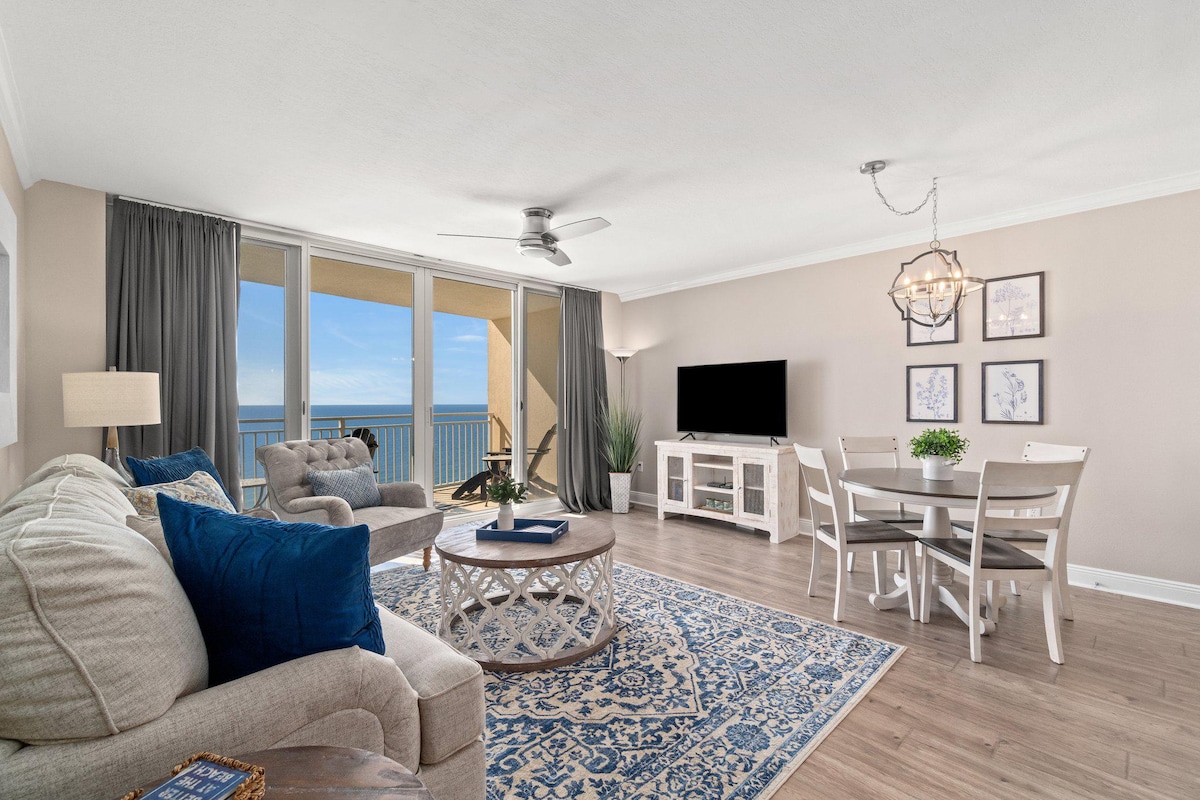 Mit ihrem unendlichen Blick auf den Golf, einem offenen Grundriss und eleganten Akzenten wird diese luxuriöse Eigentumswohnung am Strand auch den anspruchsvollsten Gästen gefallen. Das große Zimmer verfügt über eine fantastische, voll ausgestattete Küche mit Edelstahlgeräten und einem Sitzbereich für drei Personen. Genieße formellere Mahlzeiten zusammen am Innentisch für sechs Personen oder im Freien auf deinem möblierten Balkon. Der gemütliche, sonnendurchflutete Wohnbereich verfügt über einen Gaskamin und einen wandmontierten Flachbildfernseher, während die Glasschiebetüren den gesamten Raum zum Balkon hin öffnen. Und für die Schlafgelegenheiten bietet diese Eigentumswohnung drei komfortable Schlafzimmer, darunter ein „Meerjungfrauen-freundliches“ Kinderzimmer. Die Gäste haben auch Zugang zu einer Vielzahl von Annehmlichkeiten vor Ort, darunter ein Fitnessraum, ein saisonal beheizter Pool und ein Whirlpool.