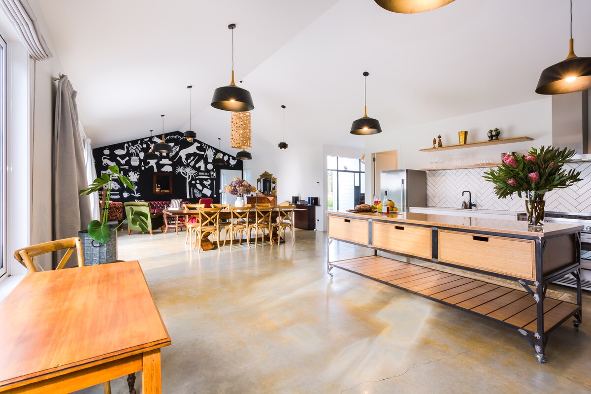 Eine Welt abseits der Welt – nur 5 Minuten von Greytown entfernt. Gelegen auf einem kleinen Bio-Bauernhof in einem schönen Garten. Super bequemes Bett, stilvolles Dekor aus der Mitte des Jahrhunderts. Wache mit Vogelgesang auf, Sternebeobachtung vom Außenbad aus, während du dem Ruf des Ruru lauschst. Entspanne dich am Pool oder leihe dir die Fahrräder aus, um die Gegend zu erkunden. Kostenloses Frühstück mit gutem Kaffee, hausgemachtem Müsli und Obst, handwerklichem Brot und Aufstrichen. Freilandeier und Speck stehen dir zum Kochen für 25 $ pro Person zur Verfügung. Parkplatz, Wärmepumpe, WLAN und Fernseher.