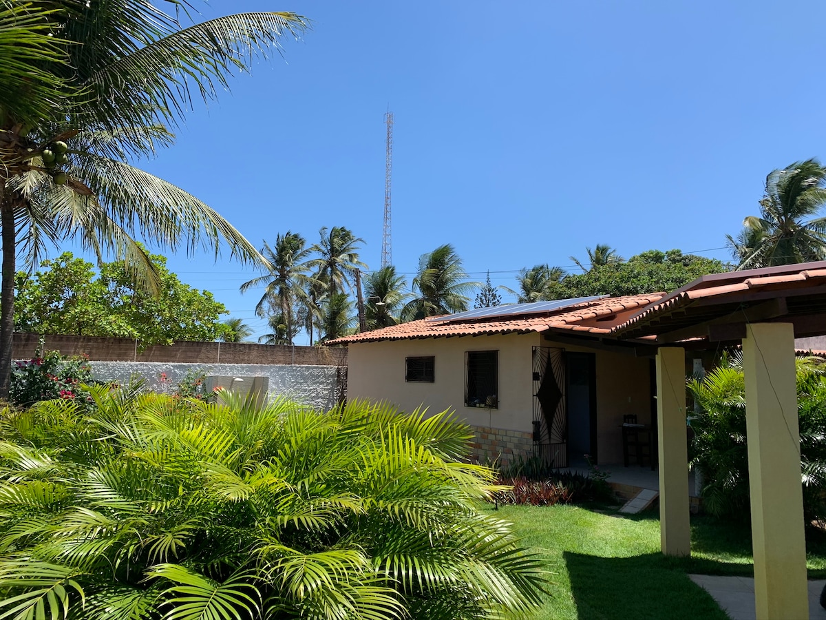 Unser Ort ist Teil der grünen Gegend von Taibinha mit einheimischem Viertel, üppiger Natur und viel Ruhe. Wir sind 400 m vom Strand Taibinha, Taibas Postkarte, in der Nähe von Mirante do Pôr do Sol und dem Komplex von Dünen und natürlichen Lagunen entfernt. Unser Chalet verfügt über ein Doppelbett, ein Einzel-Etagenbett, eine interne Küchenstruktur mit Minibar, Herd, Kaffeemaschine, Mixer und grundlegenden Utensilien, um eine gute Mahlzeit zu haben. 1 Parkplatz