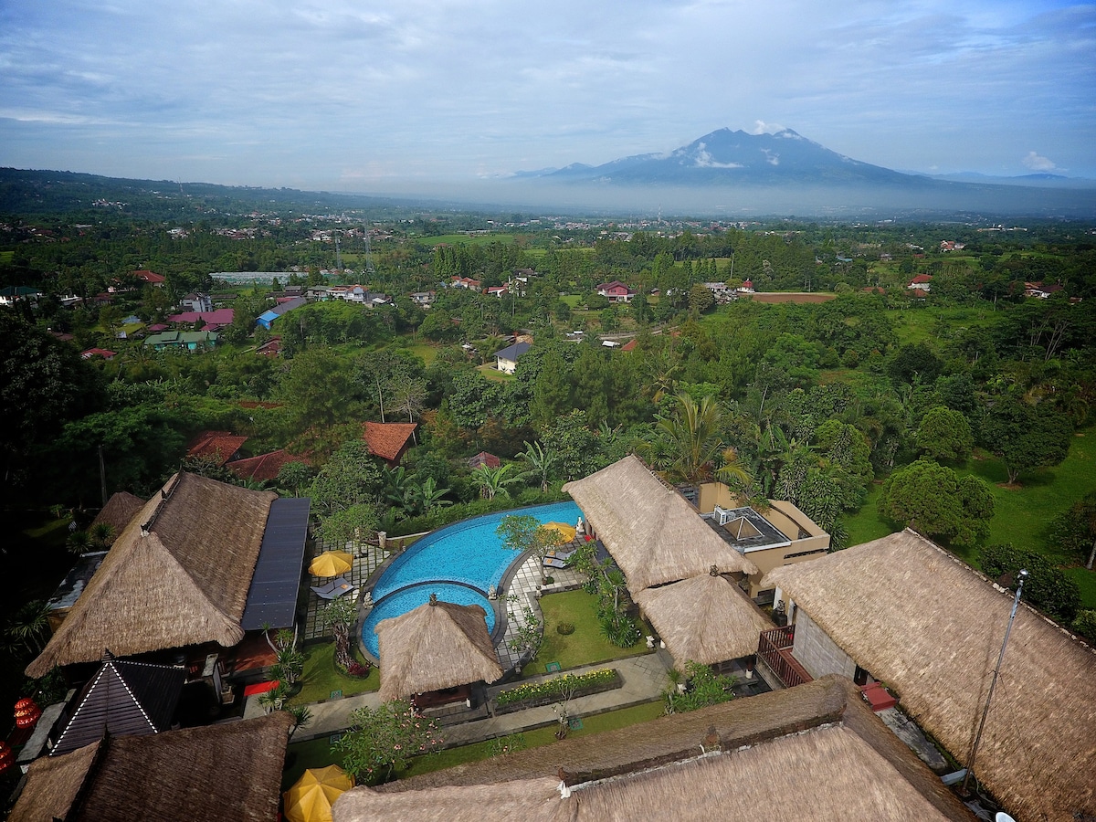 Located 800m above sea level, this stunning private villa spans 2,250sqm of sunlit land and refreshing mountain air — offering a truly unique Balinese-style luxury retreat in the highlands of West Java. For total privacy, Puri Bali Stania is rented exclusively to one group at a time (max 22 guests). The listed rate covers the entire property: one master suite villa and six bedroom suites surrounded by lush tropical gardens.