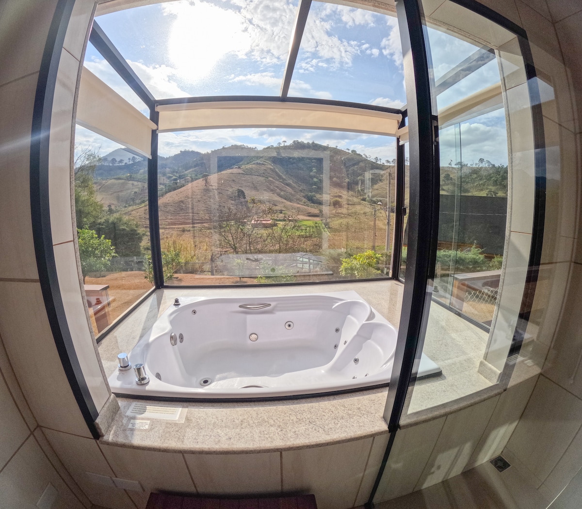 Das Chalet nas Nuvens (nur 20 Minuten von der Innenstadt von São Bento entfernt) liegt auf einem der höchsten Berge in São Bento do Sapucaí und ist ein luxuriöses Glas-Berghaus mit exklusiven Wanderwegen, einem Bauernhof mit Tieren, einem Whirlpool, Tausenden von Obstbäumen, einem Grill, einer Terrasse mit dem schönsten Sonnenuntergang in der Region, einem Kamin, Feuerstellen und einem herrlichen ganzjährigen Blick auf die Serra da Mantiqueira. Wir nennen es gerne „Himmel auf Erden“.