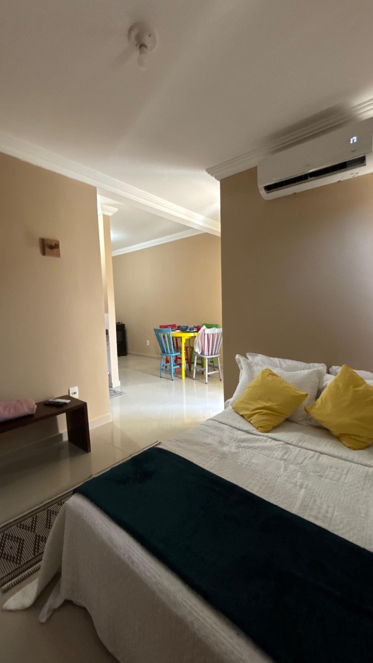 Das Hotel liegt in einer ruhigen und sicheren Gegend, mit einfachem Zugang zu Geschäften und Dienstleistungen. Es liegt in der Nähe des Busbahnhofs und des historischen Zentrums! Die Wohnung João-de-Barro hat eine Struktur aus Beton und Ziegelsteinen mit Holzdetails, die der Wohnung Charme und Komfort verleihen. Die Fassade ist schlicht, aber einladend. Das Innere ist gemütlich und mit Möbeln eingerichtet, die mir liebevolle Erinnerungen bringen. Es verfügt über ein helles Wohnzimmer mit einem bequemen Sofa und einer Hängematte! Die Küche ist einfach, funktional und luftig!
