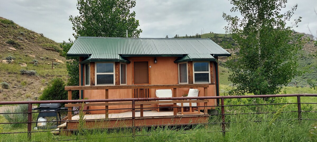 JETZT MIT KLIMAANLAGE. Meine Unterkunft liegt in der Nähe des Yellowstone National Park, Cody Nite Rodeo, wilden Mustangs, toller Aussichten, Restaurants und Speisen, des Stadtzentrums, Kunst und Kultur, Parks. Du wirst meine Unterkunft wegen der Gemütlichkeit, der Aussicht und der Lage lieben. Meine Unterkunft ist gut für Paare und allein reisende Abenteurer. Die Hütte ist mit einem Minikühlschrank, einem elektrischen Teekessel, Kaffee, Tee und Gewürzen ausgestattet. Jetzt mit WLAN.