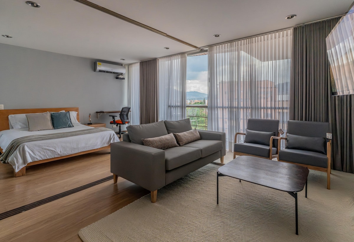 Luxus-Wohnung mit Klimaanlage in einem der besten Viertel von Laureles. Du kannst die Gegend überall zu Fuß erkunden. Das Einkaufszentrum „Unicentro“ liegt nur fünf Gehminuten entfernt und die „Calle 70“ liegt nur 15 Gehminuten entfernt. Hier findet das lokale Leben statt – von fantastischen Restaurants über coole Leute bis hin zu zahlreichen Unterhaltungsmöglichkeiten. / ¡Lujoso apartamento ubicado en uno de los mejores barrios residenciales de Laureles, a 5 mins del centro comercial unicentro, cerca de restaurantes y bares.