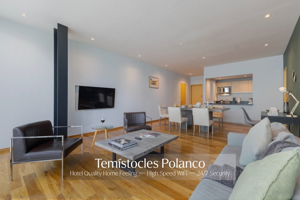 Die Lage? Unschlagbar. Sie liegt nur 2 Blocks vom Lincoln Park in Polanco, dem schönsten Viertel von Mexiko-Stadt, entfernt. Die Wohnung? Fantastisch! Sie verfügt über 2 Schlafzimmer, 2 voll ausgestattete Badezimmer, eine voll ausgestattete Küche, ein Wohnzimmer und einen Smart-TV. Aber das Beste ist der private Balkon! Geh nach draußen und genieße die Brise mit einer warmen Tasse Kaffee oder Tee. Gemeinschaftsbereiche? Ein Fitnessraum, ein Businesscenter, ein Tagungsraum und eine Dachterrasse mit einem Grill!