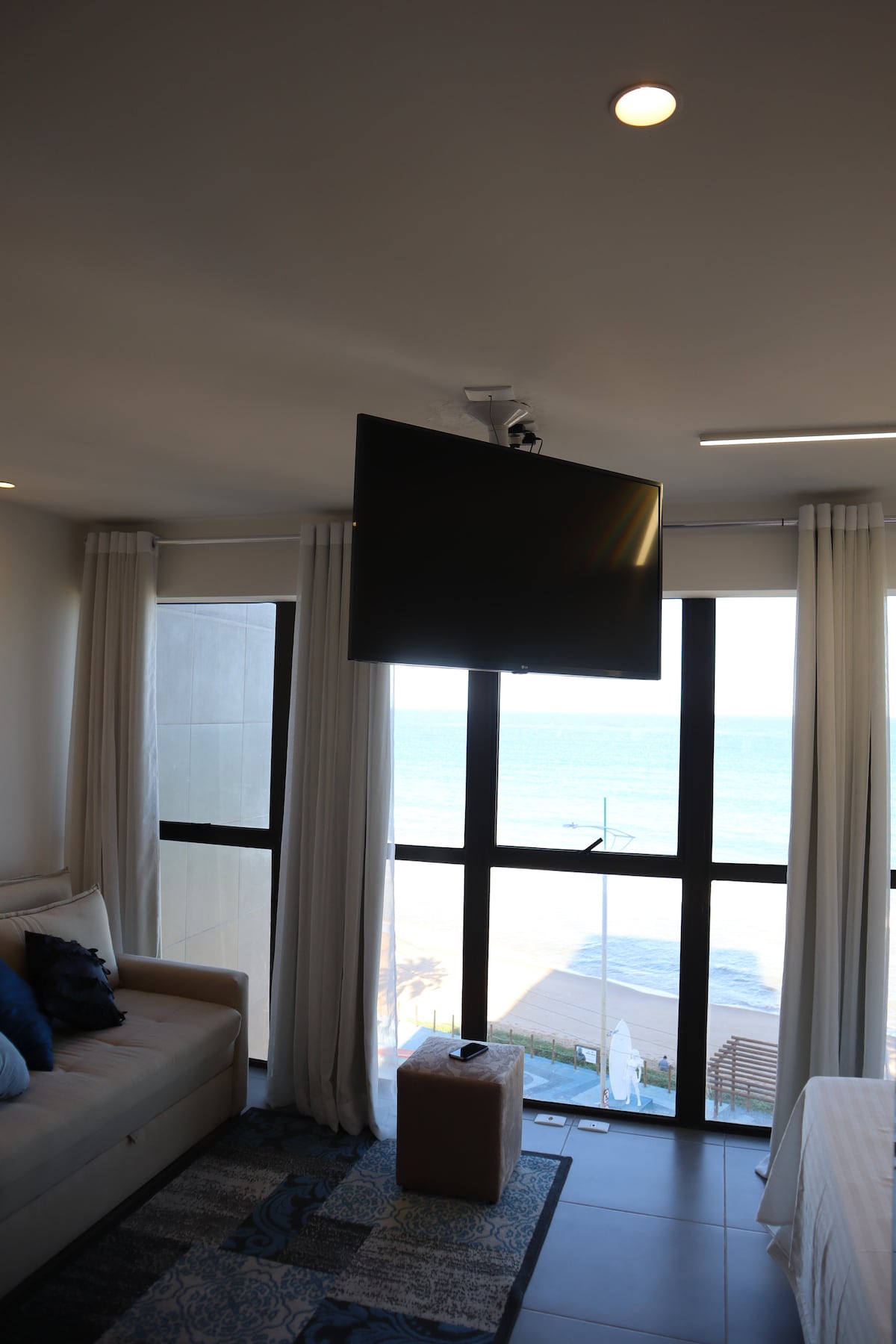Entspanne dich und genieße das Beste von Maceió mit Blick auf das Meer🌊✨. Wache mit dem Rauschen der Wellen und einem Blick auf, der in deiner Erinnerung bleiben wird, in der Nähe von allem, was du brauchst: Einkaufsmöglichkeiten, Supermärkte, Apotheken und die Bühne der wichtigsten Silvesterparty der Stadt — die Feier! Das Studio bietet Platz für bis zu 4 Gäste, mit: einem komfortablen Doppelbett und einem Schlafsofa, einer Klimaanlage, einem 40-Zoll-Fernseher und einer ausgestatteten Küche. Ideal für Paare, Familien oder Freunde, die das Beste von Maceió bequem genießen möchten.