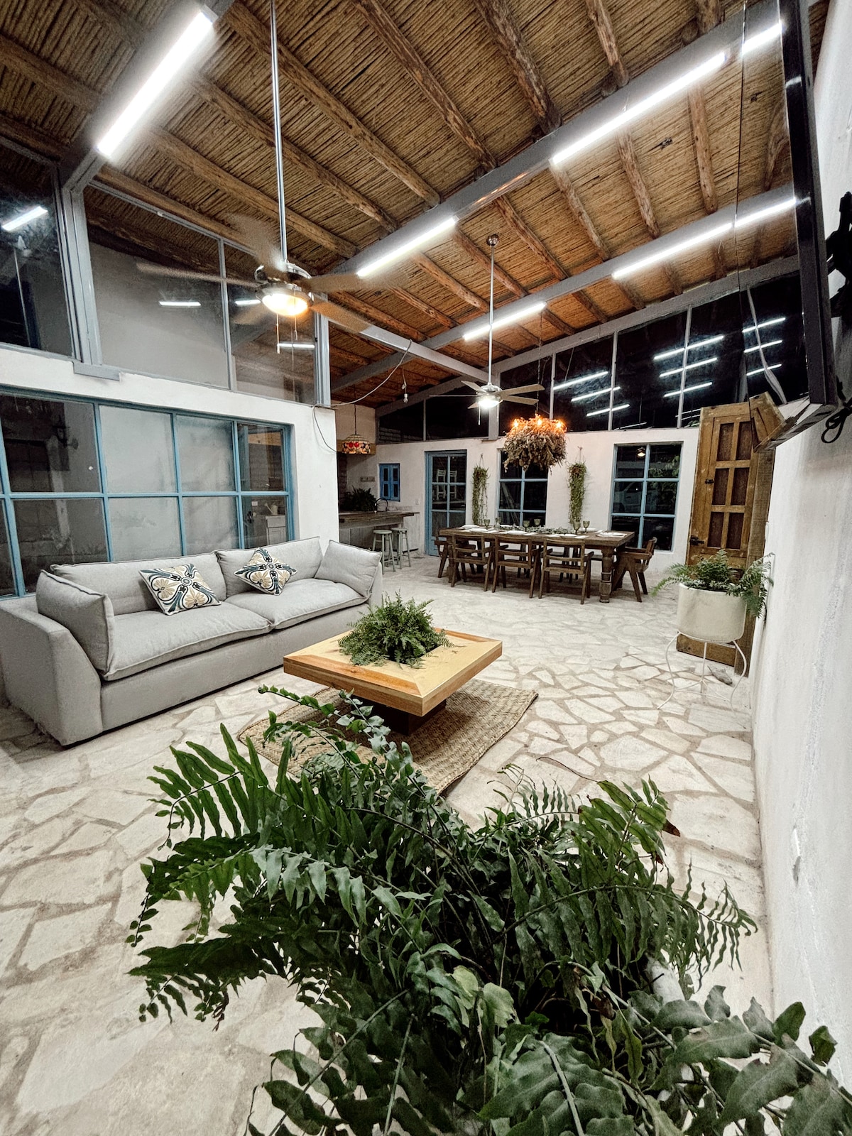Mitten auf dem Land gibt es ein Haus voller Kunstwerke, mit Schilfdecken und Holz, wo alles voll und ruhig ist. In seinen Räumen erwartet dich ein warmes Zuhause, wo du die Kühle des Stuckes, das Lehmziegelland und seine Schlammwohnungen spüren. Tagsüber kannst du durch seine hohen Decken, natürliches Sonnenlicht und in der Dämmerung die Lichter sanft beleuchtet; und in jeder Ecke entsteht eine Atmosphäre voller Liebe, Ruhe und Schönheit. Willkommen in deinem Zuhause.