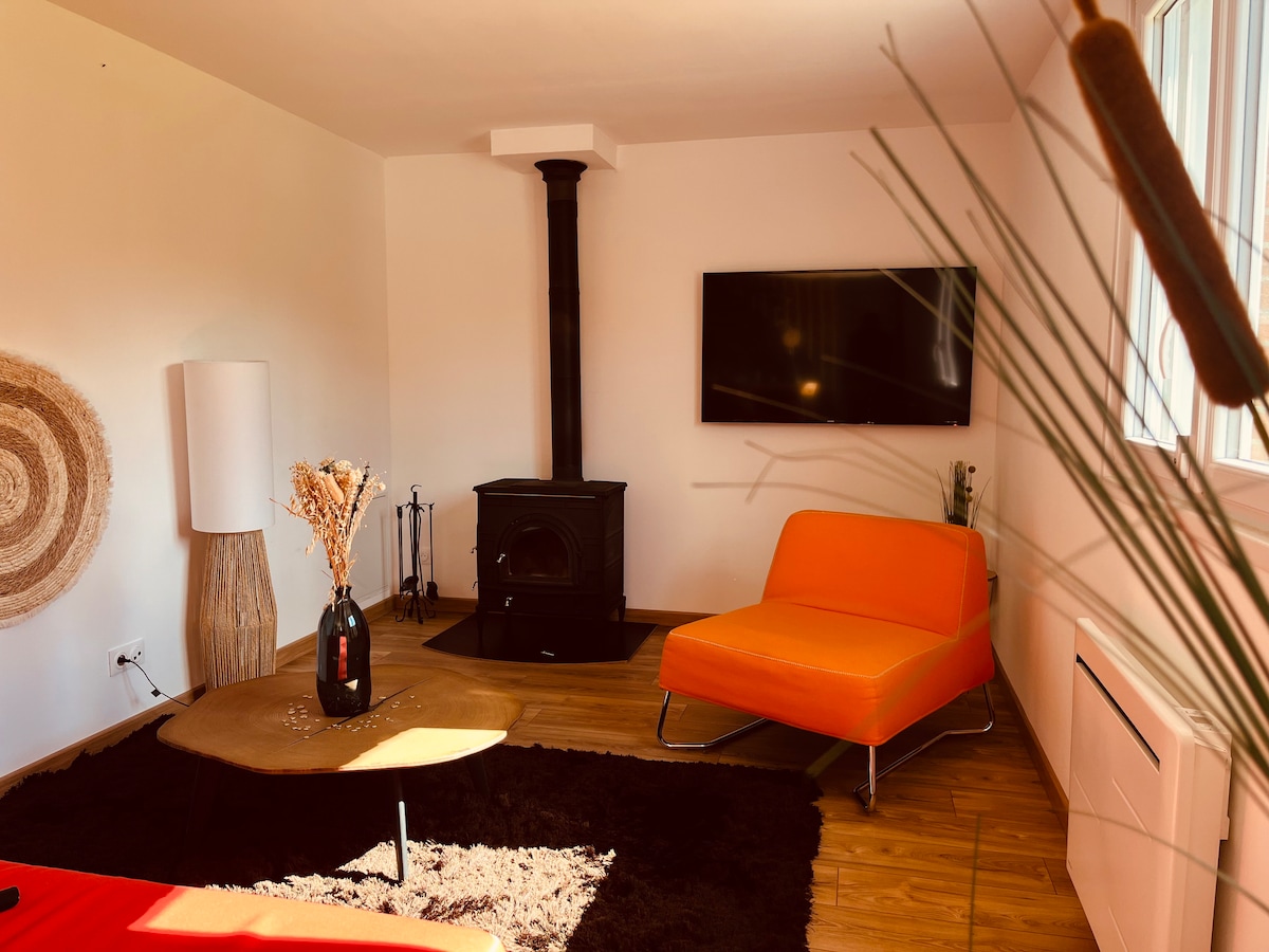 Wir hoffen, Sie bald in unserer neuen Wohnung „La Maison Rouge“ begrüßen zu dürfen, die an der Autobahn und SNCF Lille/Dunkerque, Bahnhof und Autobahnausfahrt in der Nähe des Dorfes liegt. - Unabhängige Wohnung - Große Terrasse mit Panoramablick auf die Landschaft - Holzofen - Voll ausgestattete Küche + Waschmaschine mit Trockner - Bettwäsche 180/200 sehr sorgfältig ausgewählt, um Ihnen maximalen Komfort zu gewährleisten - Ultraschnelles Glasfaser-WLAN, Apple und Orange TV - Zahlreiche Geschäfte zu Fuß erreichbar