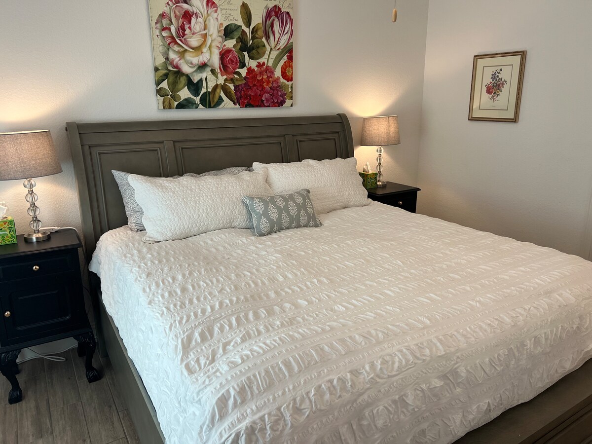 GERÄUMIGE und ruhige, angeschlossene Casita mit einem Schlafzimmer in den Vororten von Katy. Tolle Anbindung an die I-10, den Texas Heritage Parkway und den Westpark Tollway/1093, pendeln leicht nach Katy/Fulshear/Brookshire, Sugar Land oder Houston. Zugang zum Texas Medical Center und ganz in der Nähe des Energiekorridors und des Katy Medical Center. Das Kingsize-Bett ist superbequem, sodass du den Rest bekommst, den du brauchst. Die Küche ist mit ein paar Frühstücksartikeln, einem Snackkorb und kleinen Geräten ausgestattet, um bei der Zubereitung der Mahlzeit zu helfen.