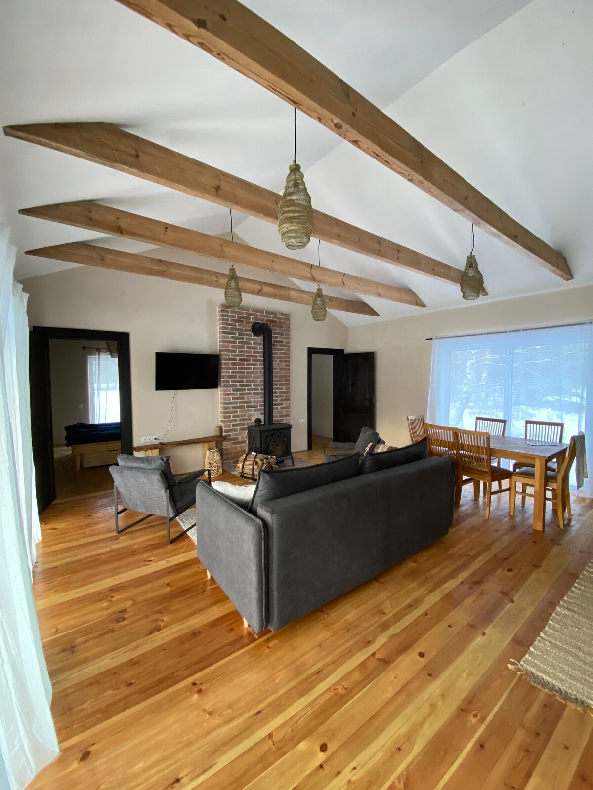 Eingebettet in einen Kiefernwald und nur 5 Gehminuten vom Strand entfernt, ist dieses gemütliche, voll ausgestattete Haus für Ruhe, Natur und einfache Freuden konzipiert. Wache mit Vogelgesang auf, schlafe unter den Sternen ein und verbringe deine Tage zwischen Waldruhe und offener Meeresluft. Perfekt für Familien, Paare oder alle, die Platz, Ruhe und Natur suchen. Ein schöner 12-minütiger Spaziergang führt dich ins Zentrum von Pāvilosta und zu den nahe gelegenen Restaurants.