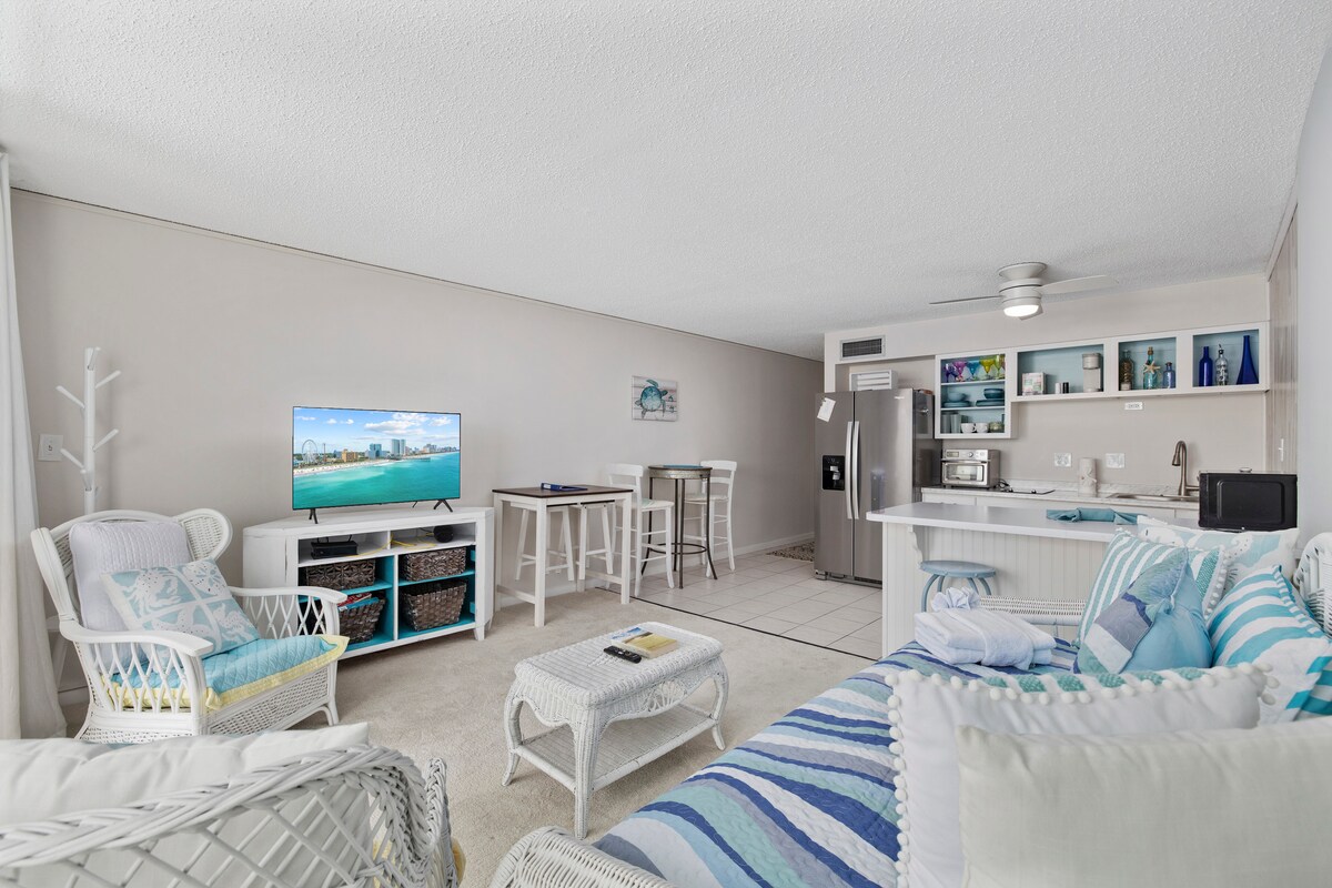 Wir freuen uns zu sagen: Die Strände, Pools und Restaurants sind jetzt geöffnet! Diese Wohnung ist professionell gereinigt!! Hauptmerkmale dieser Wohnung sind: * Oceanfront One Bedroom im Sandy Beach Resort * 1 Kingsize-Bett, mit Schlafsofa, Platz für bis zu 4 Personen, Bettwäsche vorhanden * Privates Badezimmer * Voll ausgestattete Küche mit Küchentisch * Highspeed KOSTENLOSES WLAN * KOSTENLOSER Parkplatz * Innen- und Außenpools, langsame Flüsse und Whirlpools * Kurzer Spaziergang zum 2nd Avenue Pier und Family Kingdom Vergnügungspark